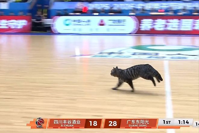 一个插曲,一只狸花猫此刻从场边钻出来,窜入场地,引得现场一片欢乐。看了这么多年球,第一次看到这种场景。首节,广东队31比22领先。奎因单节10分4篮板,萨林杰8分5篮板3助攻;段睿骐10分3篮板,成为首个得分上双的本土球员。