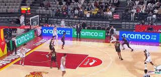 比赛打到1分46秒,山西外援迪亚洛持球进攻,在突破甩开贺希宁后迪亚洛顶着深圳外援史密斯的防守打进并造成了史密斯的犯规。