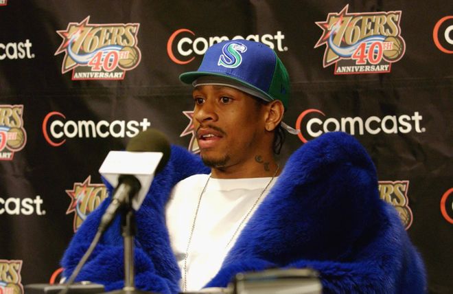 提到NBA的 “嘻哈文化禁令”,就绕不开阿伦・艾弗森 —— 这位从街头篮球走出的 “答案”,不仅用交叉步改变了后卫的打法,更用嘻哈风格的穿搭(宽松 T 恤、肥佬裤、棒球帽反戴)定义了一代球员的审美。可正是他的这种风格,让联盟出台了 “禁止穿嘻哈服饰” 的规定,让艾弗森成了 “从头到脚都被禁” 的典型。