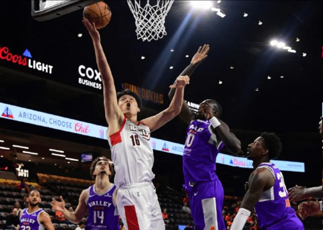 因为有着一手漂亮的高位发牌能力,所以杨瀚森被开拓者选中时,大家都觉得他可以凭借这一特长在联盟立足。然而到了正式的常规赛,杨瀚森这个优势却没有任何发挥,直到代表开拓者发展联盟混音队出战,他才重新展现出了自己的高位策应能力。