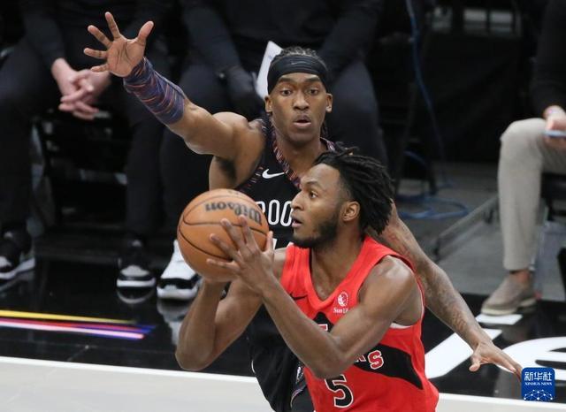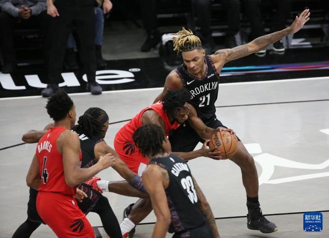 12月21日,在2025-2026赛季NBA常规赛中,布鲁克林篮网队主场96比81战胜多伦多猛龙队。12月21日,篮网队球员波特(左一)在比赛中进攻。新华社记者 张凤国 摄12月21日,猛龙队球员英格拉