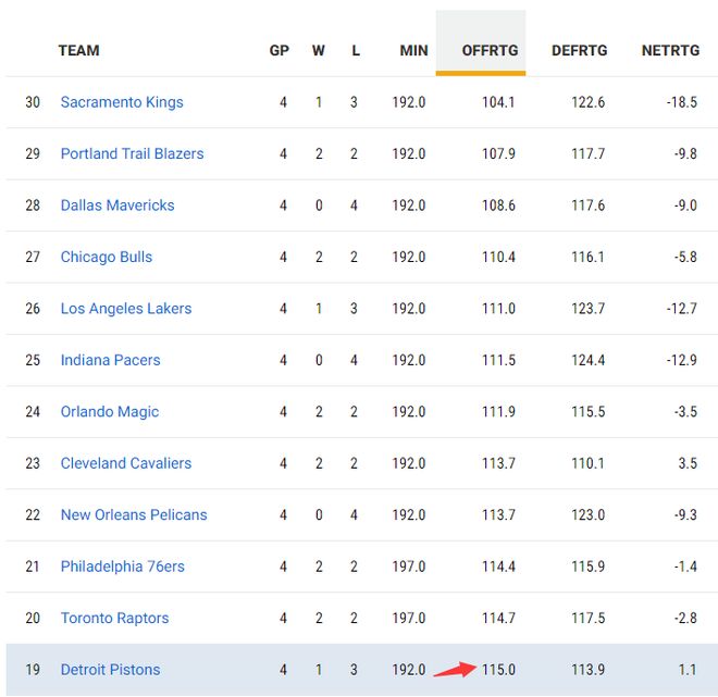 活塞本赛季的进攻效率排名第八,但最近的四场比赛下滑到联盟第19,防守效率活塞本赛季联盟第二,最近四场下滑到联盟第八,防守效率下滑没有进攻效率下滑的多,活塞本就是依靠防守的球队,进攻完完全全是CC一肩扛。