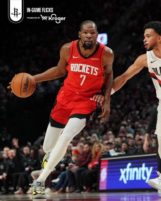 北京时间今日,在NBA常规赛中,休斯顿火箭队在客场以102-103不敌波特兰开拓者队,排名跌至西部第六。本场比赛,火箭队球星凯文-杜兰特出场37分24秒,26投14中得到了37分4篮板0助攻1盖