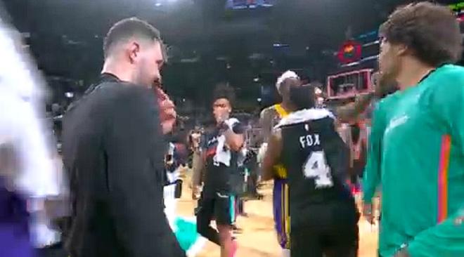 洛杉矶湖人队前锋贾里德・范德比尔特与圣安东尼奥马刺队前锋杰里米・索汉,在周三的比赛中爆发激烈冲突。即便终场哨声早已吹响,湖人和马刺两队在弗罗斯特银行中心球馆的火药味