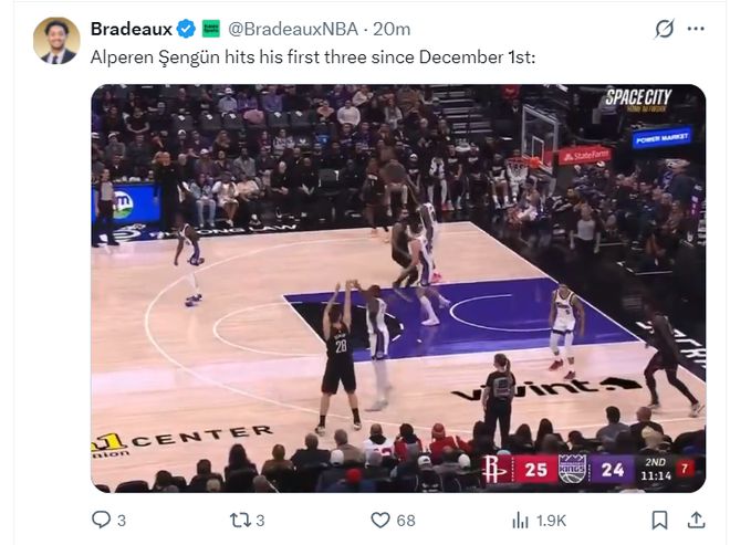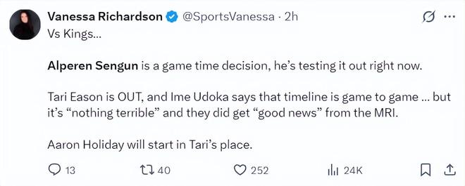 北京时间1月12日,火箭以98-111不敌国王遭遇三连败。这场比赛后火箭跌至西部第七,而太阳升至西部第六,申京提前了4-8天复出也难阻火箭的颓势。此役后太阳/火箭关于杜兰特的交易