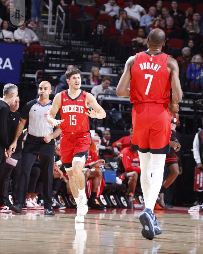 火箭队的杜兰特得到28分、10个篮板和4次助攻,申京得到23分、7个篮板和11次助攻,汤普森得到23分和5个篮板,史密斯得到18分和7个篮板。公牛队的琼斯得到34分和7次助攻,布泽里斯得到19分和6个篮板,武切维奇得到14分、7个篮板和5次助攻,史密斯得到14分和9个篮板,赫尔特得到11分。