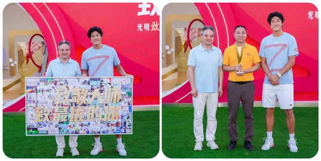 活动现场,张之臻动情回忆这段特殊情谊:“我从小喝光明牛奶长大,2023年开始以‘鲜活大使’身份和光明并肩,亲眼看到品牌对网球事业的支持越来越深入,特别自豪。”为致敬这段跨界携手,黄黎明为其送上精心定制的“时光回顾照片框”,收录双方合作以来的珍贵瞬间;张之臻则回赠2025大师杯签名相框,让这份“双向奔赴”的品牌佳话再添温暖注脚。