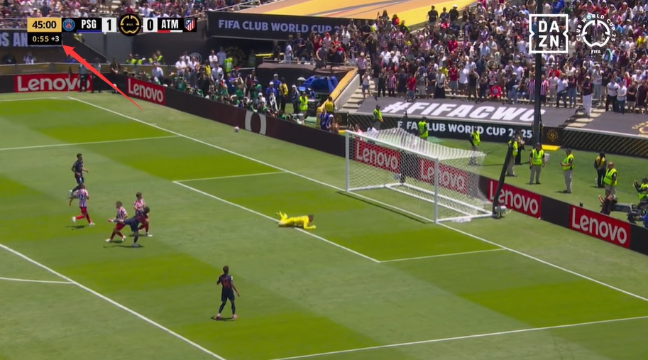 世俱杯小组赛首轮,巴黎4-0大胜马竞,上半场比赛补时阶段,巴黎反击完成破门。从多纳鲁马完成扑救,到皮球打入马竞球门,全程仅花15秒,巴黎用3次传球将球交给维蒂尼亚,后者如入无人之境完成终结。