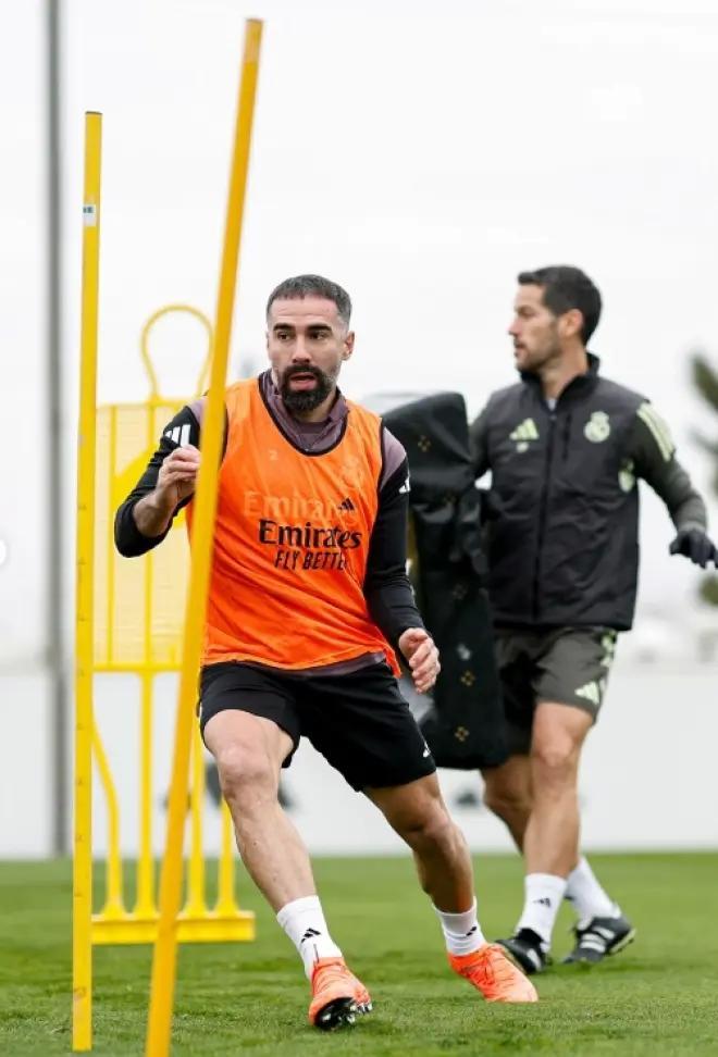 据《马卡报》消息,在右膝手术近70天后,卡瓦哈尔已开始随队合练,并全力争取进入西班牙超级杯名单。与此同时,他的复出不仅缓解了皇马右后卫的人手危机,也让其个人前景与续约问题再