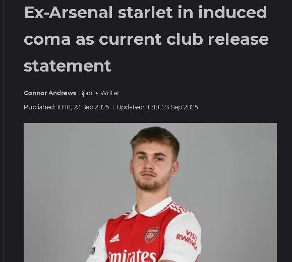 比赛中重伤!前阿森纳青训球员维加遭遇严重脑部损伤,目前昏迷