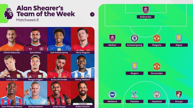 阿兰希勒评英超第8轮最佳阵:哈兰德领衔,马奎尔入选