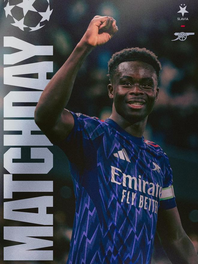 本赛季欧冠联赛阶段第4轮,阿森纳客场对阵布拉格斯拉维亚。阿森纳官方更新赛前海报,萨卡单人出镜。萨卡本赛季已为阿森纳各项赛事出场12次,其中9次首发,贡献了4粒进球。在赛前新