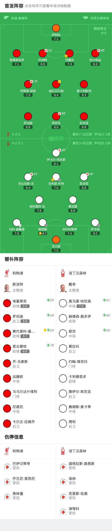 - 英超第12轮,利物浦主场0-3不敌诺丁汉森林,遭遇队史英超主场并列最大分差失利。此役主场对阵诺丁汉森林,利物浦0...发表于: 11-23 11:47