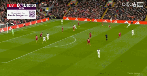 第79分钟,吉布斯-怀特中路补射破门!利物浦0-3落后森林