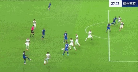 比赛的第27分钟,马纳法右路挑传,吴曦禁区内顺势挑射破门,2比0!