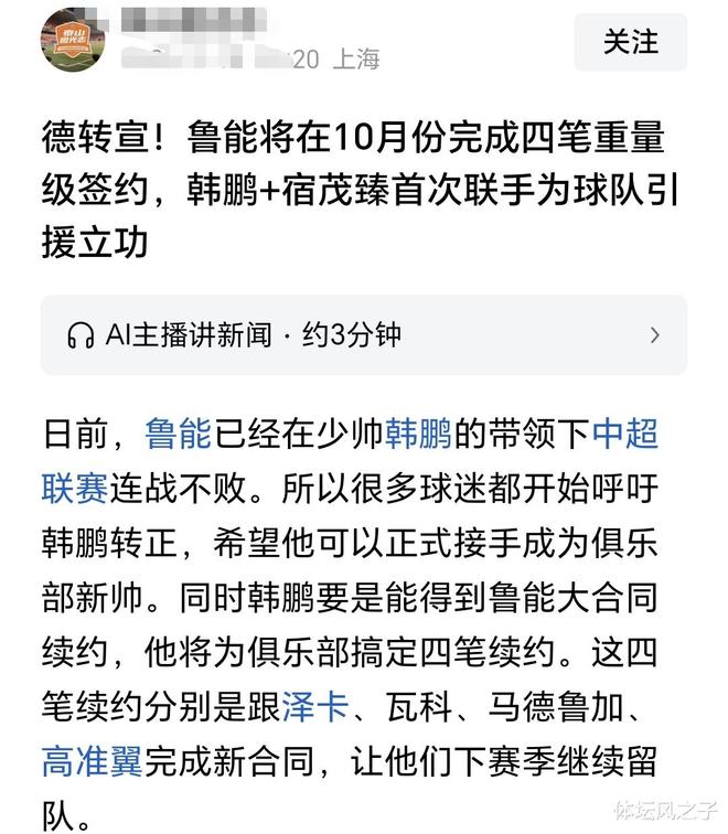 如今中超联赛还在火热进行,其中山东泰山在经过了上半程的动荡之后,在少帅韩鹏上任之后,已经是快速带领球队重回正轨了,而泰山队也已经是展现出了强劲的竞争力,而在韩鹏带队有持续